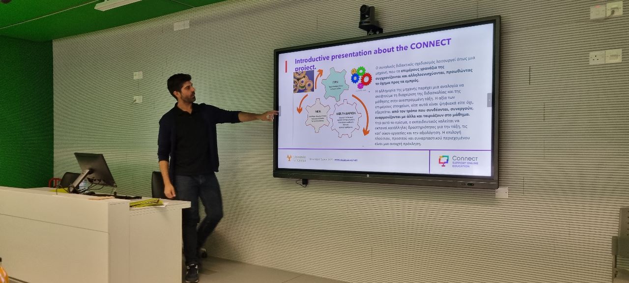 The University of Cyprus organized a prestigious national multiplier event to showcase and celebrate the significant progress achieved thus far in the CONNECT project. The aim was to foster the involvement from the different communities (schools, universities, educational organizations) as the project approaches its final phase. The event focused on highlighting the intellectual outputs developed as part of the project, namely the Pedagogical Framework, Educational Scenarios, Online courses (MOOC), and Teachers Guide.