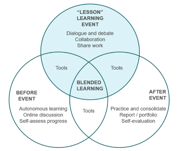 Blended learning as a process including before and after learning events (European Commission, 2020)