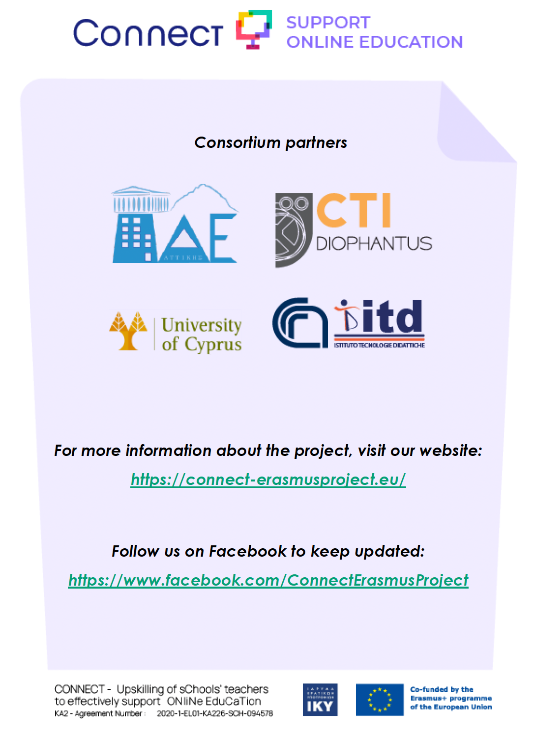 “CONNECT” is an Erasmus+KA2 project [GRANT AGREEMENT: 2020- 1-EL01-KA226- SCH-094578], launched in March 2021, which aims to promote digital education in Mathematics, Physics and Foreign Languages in lower secondary education as well as to enhance the professional skills of teachers in digital technology.
